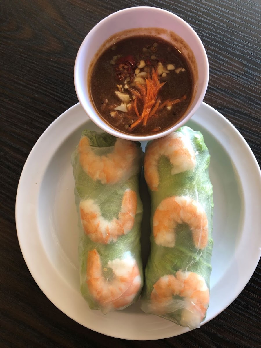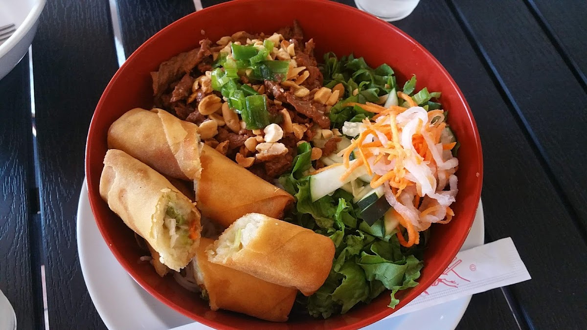 Vermicelli with Grilled Beef and Veggie Spring Rolls
